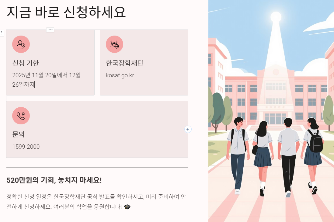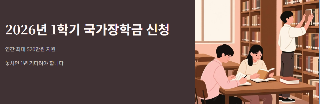 놓치면 1년을 기다려야 하는 국가장학금 2026년 1학기 신청이 시작됩니다! 연간 최대 520만원까지 지원받을 수 있지만, 신청 조건과 절차를 정확히 모르면 탈락할 수 있습니다. 지금 바로 신청 자격부터 제출 서류까지 완벽 가이드를 확인하세요.