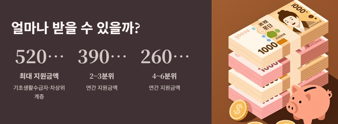 | 기초생활수급자 | 260만원 | 520만원 |
