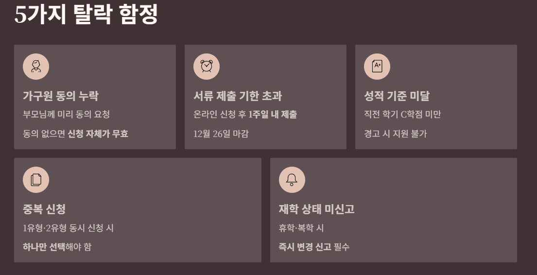 - 재학 상태 변경 신고 누락 - 휴학·복학 시 즉시 변경 신고