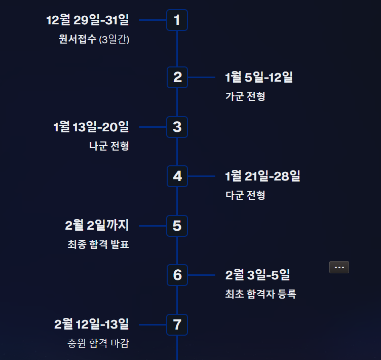| 정시 원서접수 | 2025년 12월 29일(월) ~ 12월 31일(수) — 3일간 |