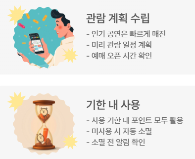 - 공연·전시·뮤지컬·클래식 등 문화예술 분야 사용 가능
